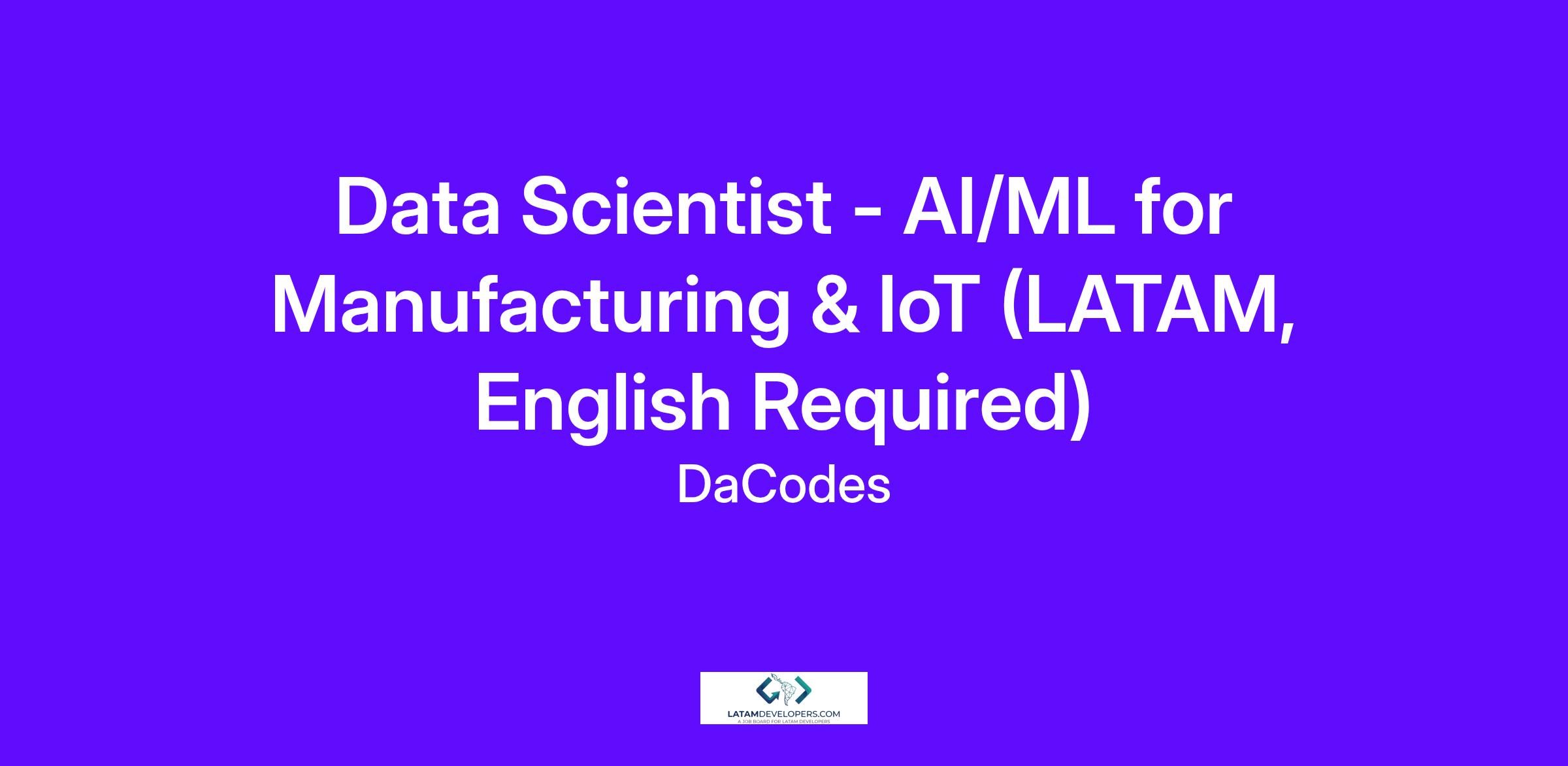 We are looking for a Data Scientist with strong experience applying AI, Machine Learning, and Data Science in manufacturing and industrial environments, including IoT, robotics, and embedded systems. In this role, you will collaborate closely with manufacturing, operations, and business teams to identify high-impact AI/ML opportunities and lead end-to-end machine learning initiatives that deliver real business value.