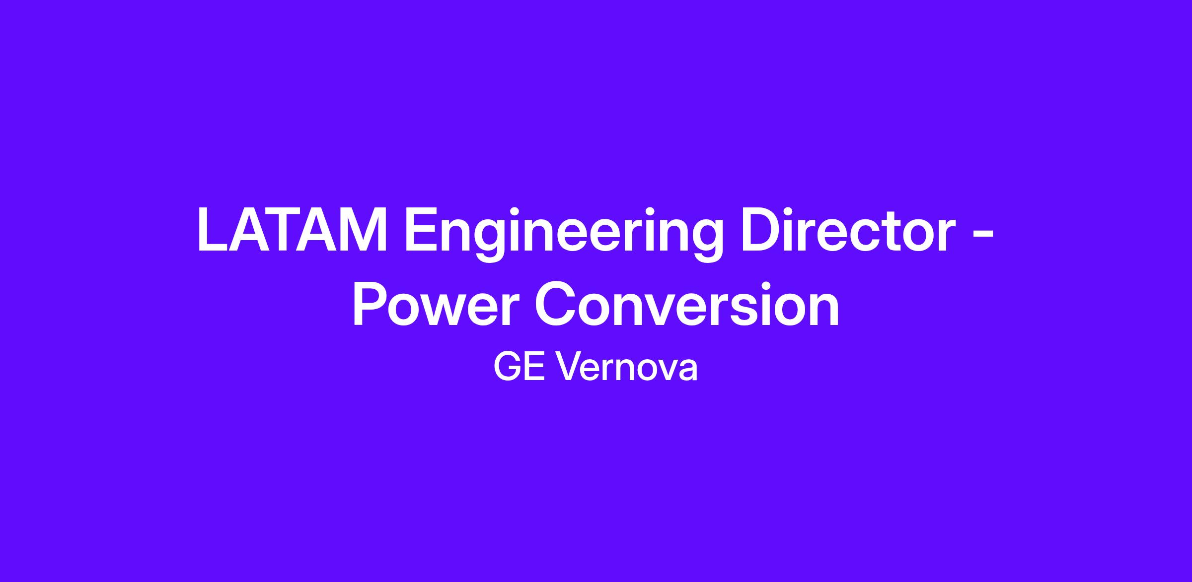 The role requires focus towards growth on the Latam region operation, and he/she will leverage the GE network, to drive product innovation, technology injections, structuring and cost-out through tools and processes in the areas of power electronics, automation, power systems, switchgears, rotor dynamics, vibration, electromagnetics, insulation, aero-thermo, structural, and both electrical and mechanical systems integration.