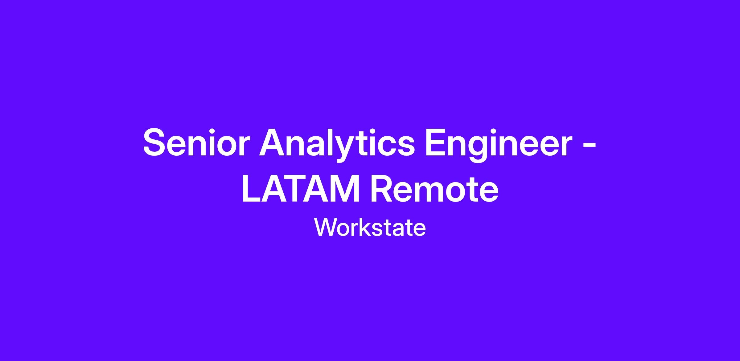 DescriptionWorkstate is hiring a Senior Analytics Engineer! In this pivotal role, you will play a critical role in building and improving our analytical infrastructure, unlocking insights that drive decision making. You will be at the forefront of helping turn raw data into meaningful insights for business stakeholders across our client's company.